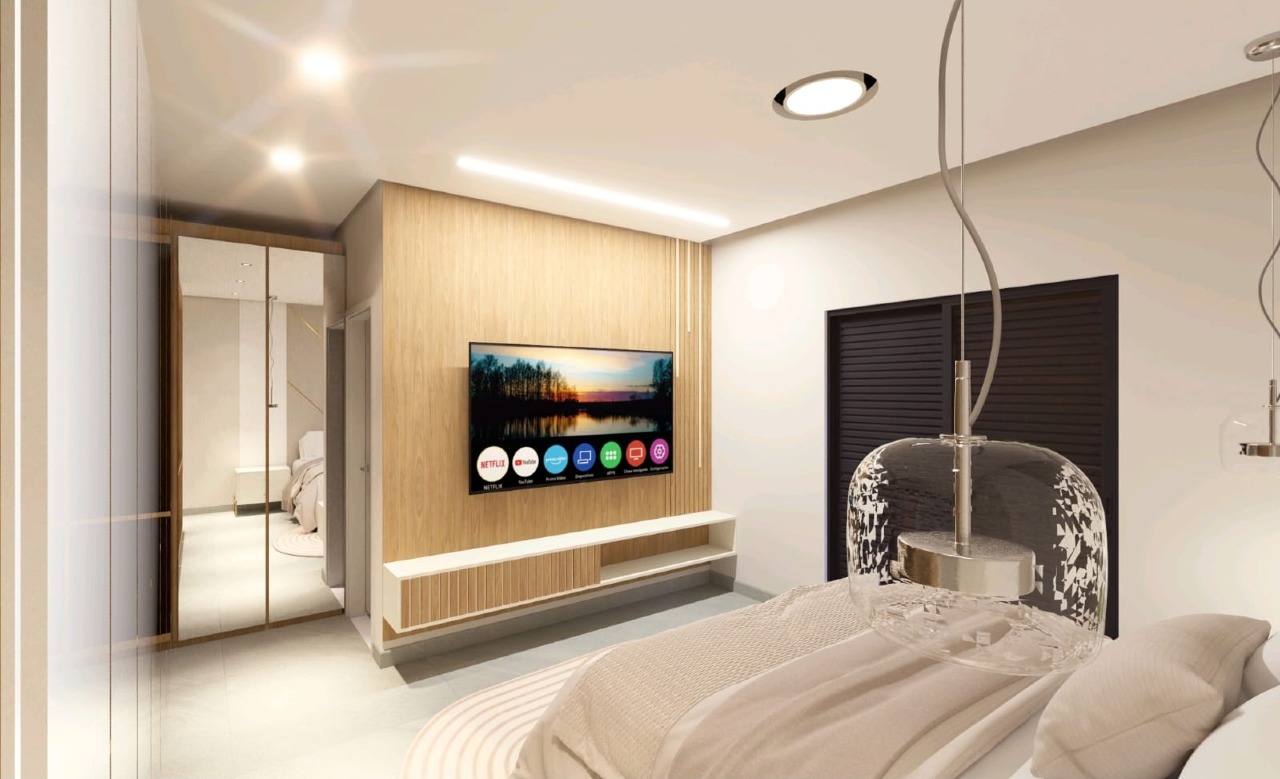 Com 3 quartos, sendo uma suíte plena e duas suítes americanas, a residência oferece uma composição equilibrada de conforto, privacidade e bom gosto. Cada ambiente foi cuidadosamente desenhado para proporcionar praticidade, valorizando o seu estilo de vida com sofisticação.