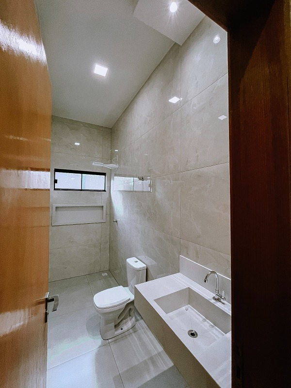 No interior, a casa revela uma distribuição inteligente e sofisticada, pensada para o máximo conforto. A sala oferece um ambiente acolhedor e versátil, perfeito para receber amigos e familiares com estilo. A cozinha integrada se destaca pela praticidade, garantindo uma perfeita harmonia entre os espaços e tornando o preparo das refeições uma experiência prazerosa.