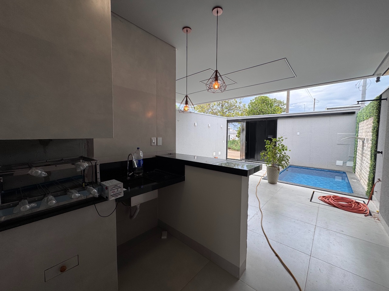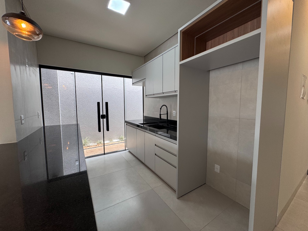 A cozinha, com vista para a sala, proporciona acesso direto à piscina, criando o cenário perfeito para receber familiares e amigos em momentos de descontração, além da área de serviço que oferece praticidade e organização no dia a dia.