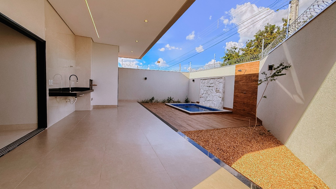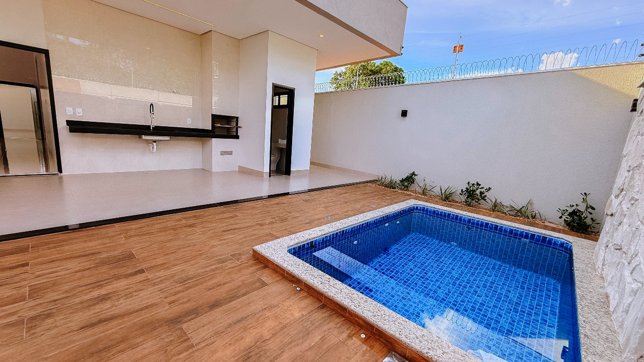 Na área externa, o lazer é completo, com piscina com cascata e hidromassagem, área gourmet com churrasqueira e lavabo de apoio, ideal para receber amigos e familiares. O imóvel possui ainda poço semiartesiano, garantindo economia e praticidade no dia a dia.