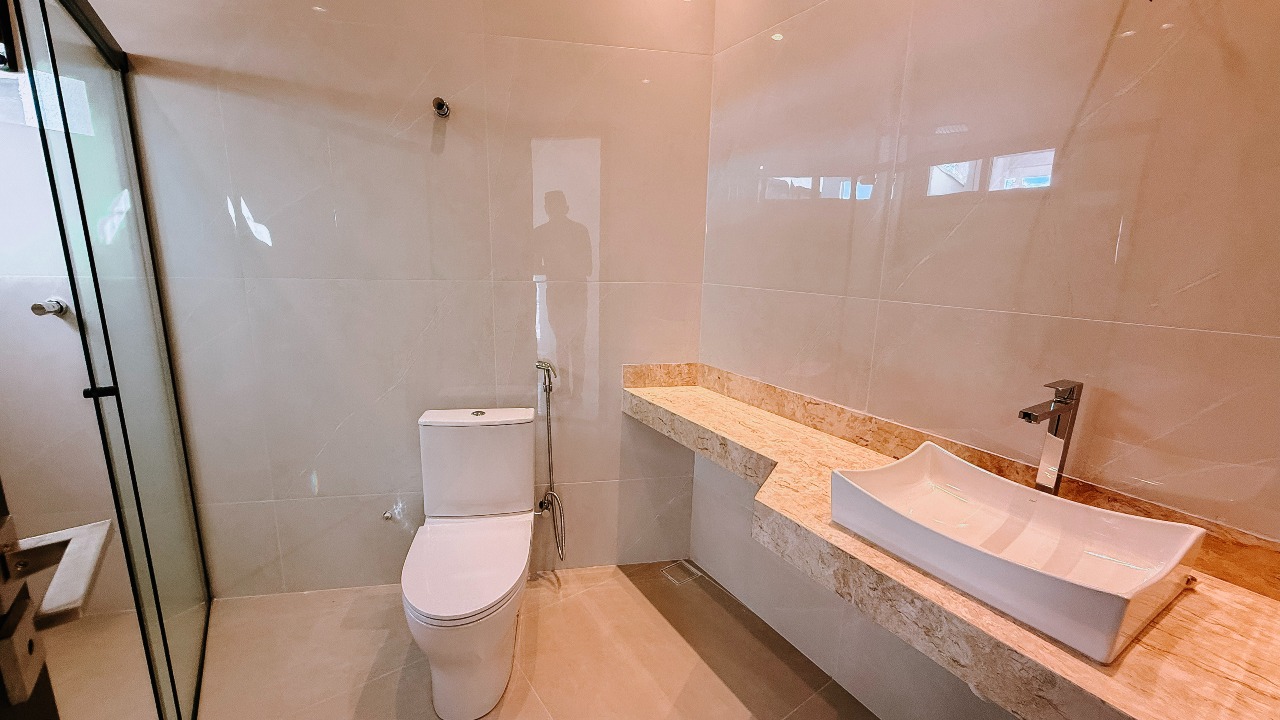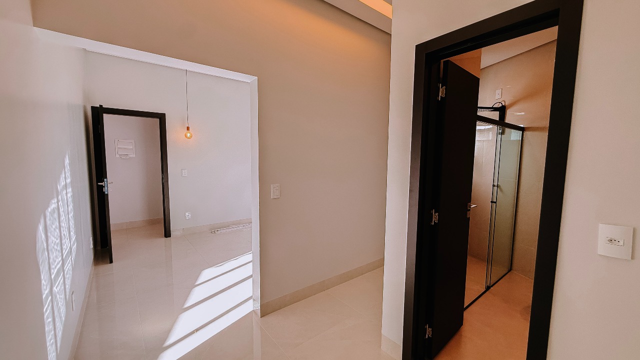 O projeto conta com 03 suítes, sendo 01 suíte master com closet, garantindo conforto e privacidade, além de duas suítes bem distribuídas para atender perfeitamente à rotina da família. A área social impressiona pelo pé-direito duplo, proporcionando imponência, excelente ventilação e iluminação natural. A sala de TV e jantar é integrada à cozinha, criando um ambiente moderno, fluido e acolhedor, além de contar com despensa.