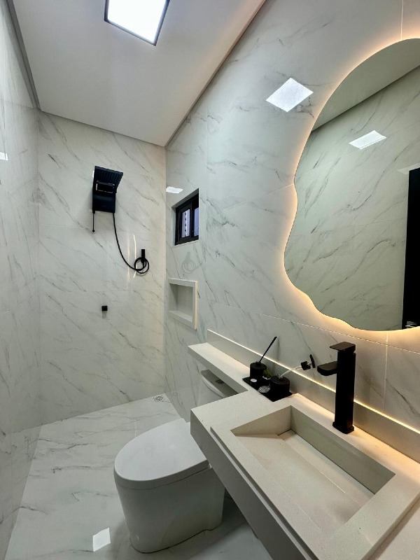 A área externa é um verdadeiro oásis, com piscina com borda de vidro e cascata, perfeita para relaxar e desfrutar de momentos de lazer. O deck de madeira ao redor cria um ambiente elegante e convidativo, ideal para encontros inesquecíveis e celebrações especiais. A área ainda conta com 1 lavabo e área de serviço, e 2 garagens cobertas, garantindo praticidade e conforto sem abrir mão do estilo. Cada detalhe foi pensado para transformar o espaço em um verdadeiro refúgio de bem-estar e diversão.