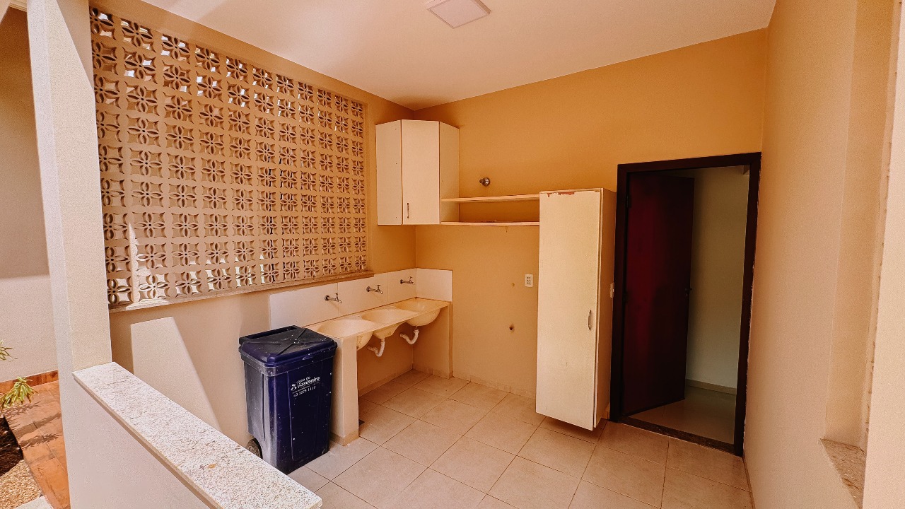 A garagem coberta comporta 3 veículos, oferecendo praticidade e proteção.
