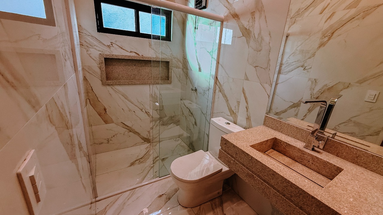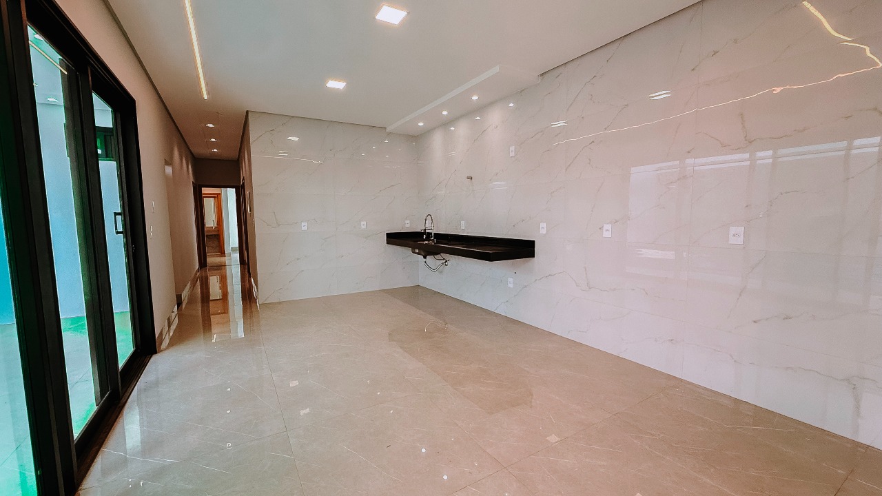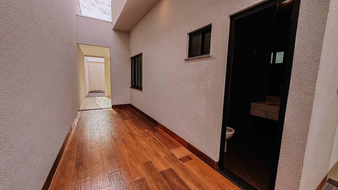 O projeto conta com 03 suítes, sendo 01 suíte com closet amplo, garantindo conforto e privacidade, além de suítes bem distribuídas para atender perfeitamente à rotina da família. A área social impressiona pelo pé-direito duplo, proporcionando imponência, ótima ventilação e iluminação natural. A sala integra-se de forma harmoniosa aos demais ambientes, criando um espaço moderno e acolhedor. A cozinha é funcional e conta com despensa, trazendo ainda mais praticidade ao dia a dia.