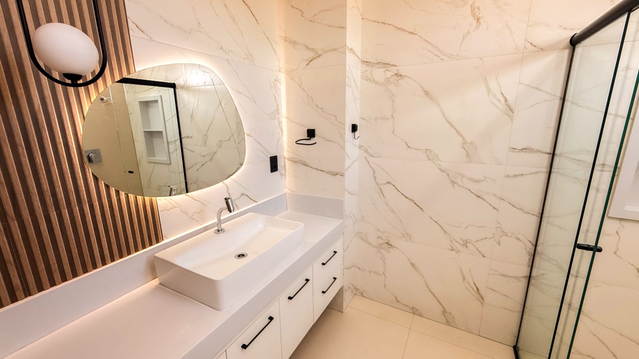 O imóvel conta ainda com home cinema com banheiro, que pode ser revertido para uma 5ª suíte, agregando versatilidade ao projeto.
