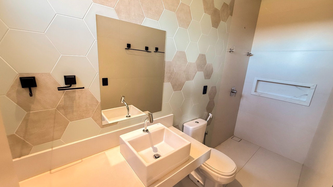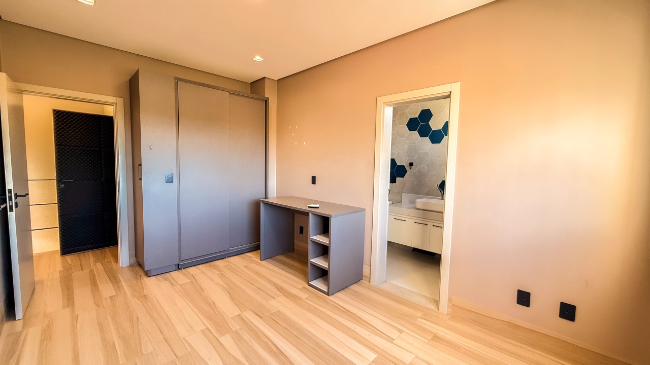 No pavimento térreo, a residência dispõe de 01 suíte com closet, proporcionando praticidade e acessibilidade. Já no piso superior, são 03 suítes, sendo 01 com closet, garantindo conforto e privacidade para toda a família.