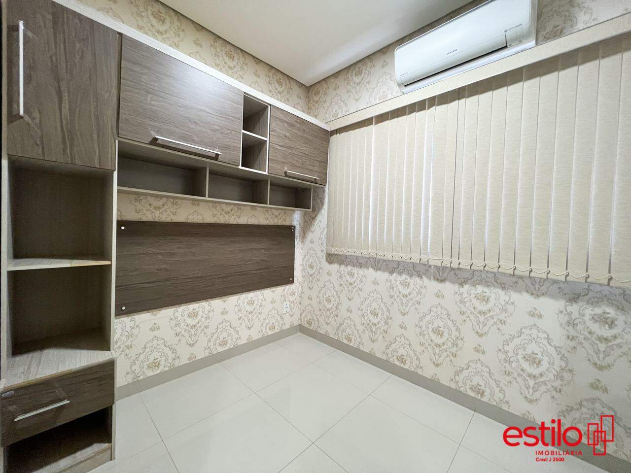 Subindo temos a parte íntima do imóvel que possui 3 quartos sendo 1 suítes, ambos com guarda roupas planejados e ar condicionado.